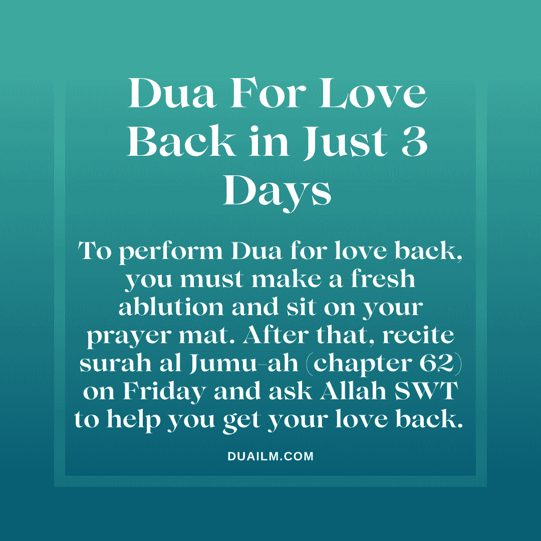 Brings Peace: When love problems arise, they can cause emotional stress. Dua helps to calm your heart, reminding you that Allah is in control, and He will guide you to what is best.